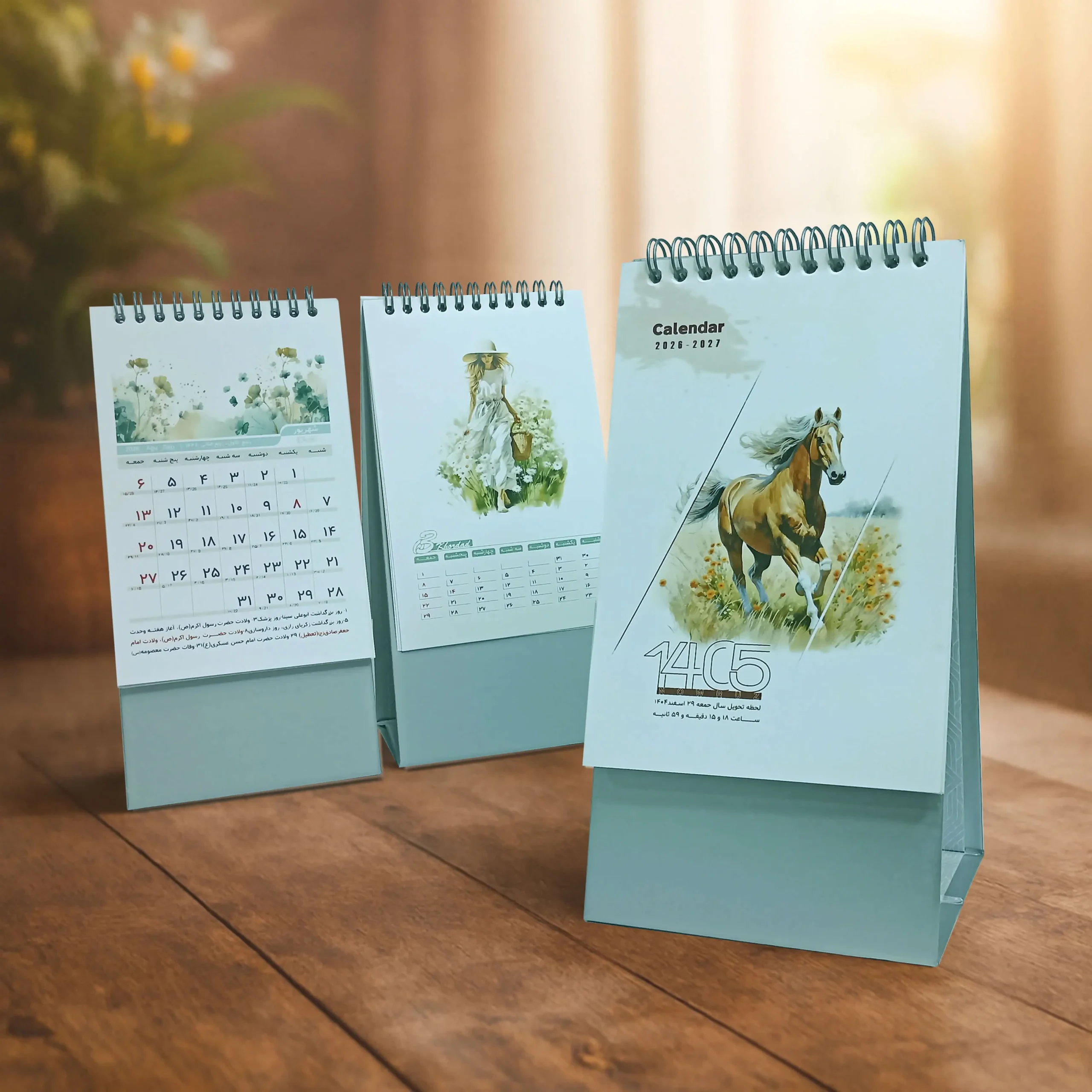 تقویم رومیزی آوا با طراحی شیک، پایه گلاسه سلفونی و رنگ نقرهای، دارای فضای مناسب برای چاپ لوگو و قابلیت اجرای طلاکوب، نقرهکوب، مشکیکوب و نصب پلاک لیزر خورده.